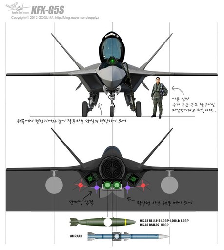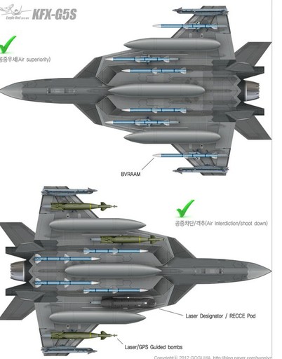 韓國公布的這組KFX-G5S戰(zhàn)機圖片中的另一關鍵技術要點是,有別于之前任何一款第五代戰(zhàn)機方案,韓國似乎在構想KFX-G5S型戰(zhàn)機之初,就將外部掛載視作主要性能,而非像美制第五代戰(zhàn)機那樣,將外部掛載視作特殊情況下的無奈之舉。從韓國為KFX-G5S戰(zhàn)機規(guī)劃的掛載方案來看,作為輕型戰(zhàn)機的KFX-G5S,在無內部掛載的情況下,外掛點超過10個,基本達到F-16戰(zhàn)機的水平。如果再考慮第五代戰(zhàn)機較之第四代戰(zhàn)機較大的內部空間帶來的機內載油優(yōu)勢,KFX-G5S型戰(zhàn)機的外掛能力應在F-16之上。
