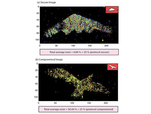 應用到現(xiàn)實中,如果一架隱身飛機通過攔截光子并重新發(fā)送虛假信號實現(xiàn)隱身,那雷達回波僅相當于一只鳥的大小就可以掩蓋自身的真實位置,但量子雷達在這一欺騙過程中也同時會發(fā)現(xiàn)飛機的蹤跡。這項新發(fā)明在技術工程上也有相似的運用,比如可以用類似的方式進行量子密鑰加密,通過改變密鑰的量子屬性來達到目的。來自羅徹斯特光學研究所的科學家梅胡爾·馬利克(Mehul Malik)利用該技術對遠程隱身轟炸機進行反射光子測試實驗,測量反射信號的極化錯誤率。