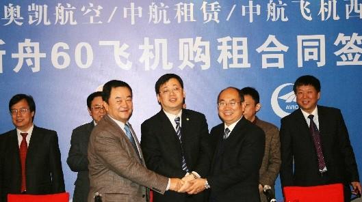 2013年1月18日,奧凱航空與中航國際租賃公司、西安飛機國際航空制造股份有限公司在北京簽署3架新舟60飛機購租合同。奧凱航空總裁劉偉寧;西飛集團公司總經理、黨委書記、中航飛機西飛黨委書記宋水云;中航租賃總經理趙宏偉等領導在購租合同上簽字。