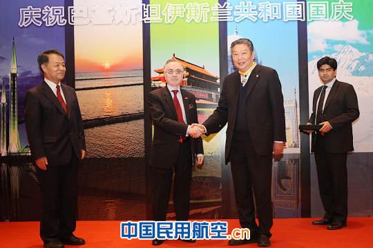 3月21日,在巴基斯坦國(guó)慶日來(lái)臨之際,巴基斯坦駐中國(guó)大使館在北京舉辦巴基斯坦國(guó)慶日招待會(huì)。巴基斯坦駐華大使馬蘇德哈立德代表巴基斯坦總統(tǒng)向7位為增進(jìn)巴中關(guān)系而做出重要貢獻(xiàn)的中國(guó)公民授予獎(jiǎng)?wù)。其中,中航工業(yè)董事長(zhǎng)林左鳴被授予巴基斯坦“卓越之星”國(guó)家榮譽(yù)獎(jiǎng)?wù),以表彰林左鳴董事長(zhǎng)為推動(dòng)中巴兩 國(guó)航空合作、推進(jìn)巴基斯坦航空事業(yè)做出的貢獻(xiàn)。