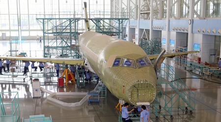 中國經(jīng)濟網(wǎng)航空訊 據(jù)中國商飛有限公司報道,ARJ21-700飛機106架機于6月28日移入飛機總裝車間后,飛機總裝車間緊鑼密鼓地進行前貨艙隔音棉的敷設、電纜導線的地面返修、后附件艙液壓系統(tǒng)相關附件的安裝等裝配任務,以及通壓和導通前的準備工作。