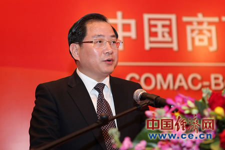 中國(guó)商飛公司董事長(zhǎng)金壯龍?jiān)诤灱s儀式上講話(huà)