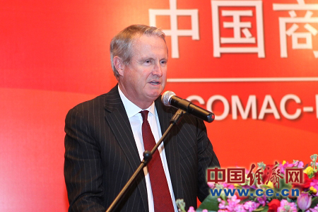 波音民用飛機(jī)集團(tuán)總裁兼首席執(zhí)行官安波杰在儀式上講話(huà)