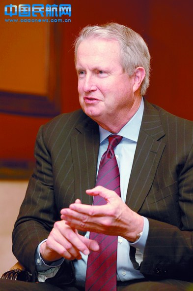 3月5日-9日,美國波音公司執(zhí)行副總裁、民機集團總裁兼首席執(zhí)行官安波杰訪問我國。這期間,他代表波音公司與中國商飛簽署了合作協(xié)議,宣布雙方將在北京創(chuàng)建波音—中國商飛航空節(jié)能減排技術(shù)中心,支持旨在提高民用航空業(yè)燃油效率和減少溫室氣體排放的研究項目。除該活動外,安波杰還拜訪了北京、上海和廣州等地的航空客戶,就加強合作進一步進行溝通。在北京期間,安波杰特意接受了本報的專訪。