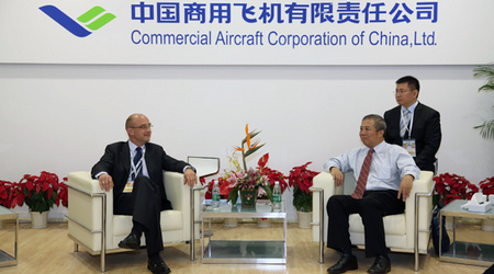 中國經(jīng)濟網(wǎng)訊 2012年11月14日中國商飛公司副總經(jīng)理吳光輝在第九屆珠海航展期間會見了國際航空界友人,雙方就互相關(guān)心的問題深入交換了意見。