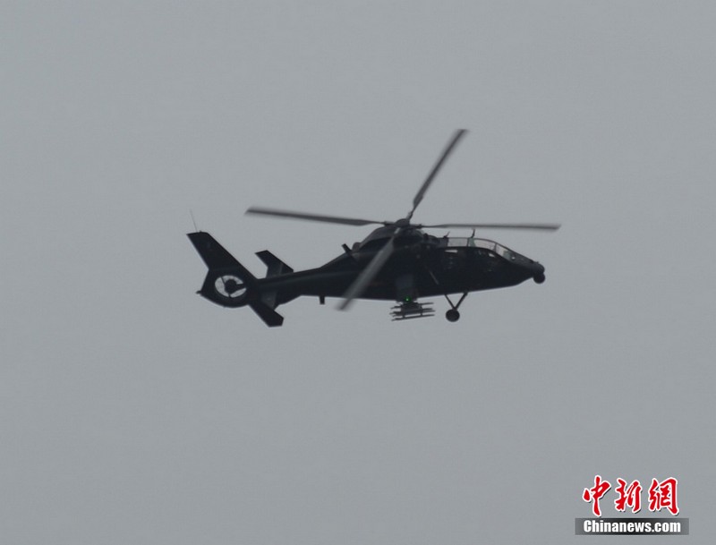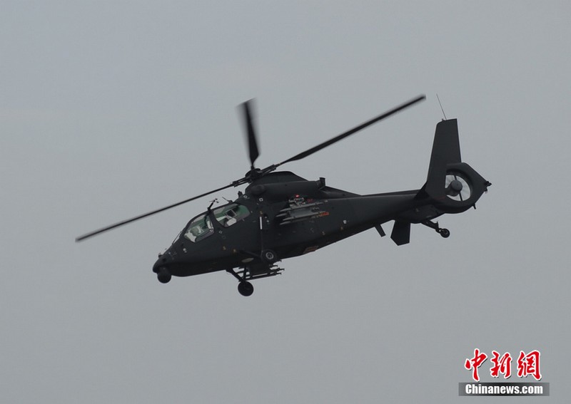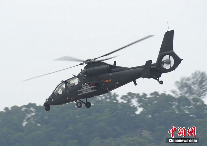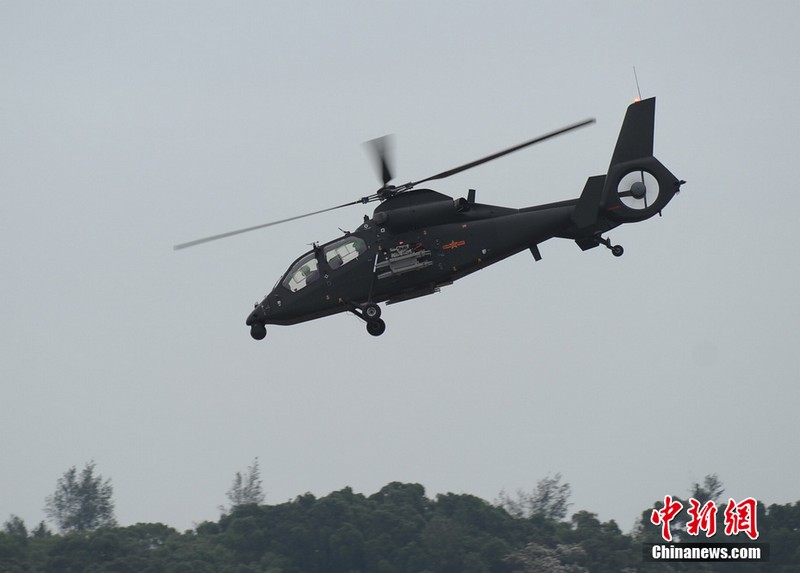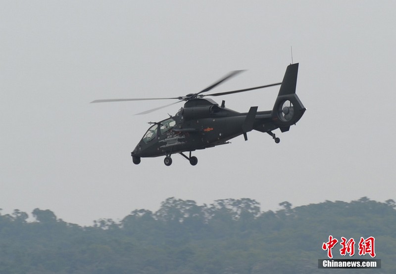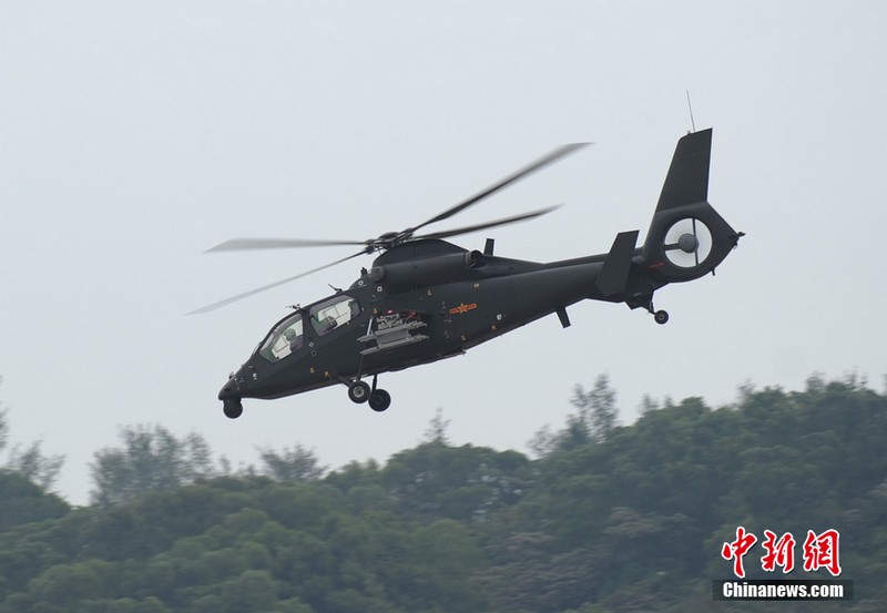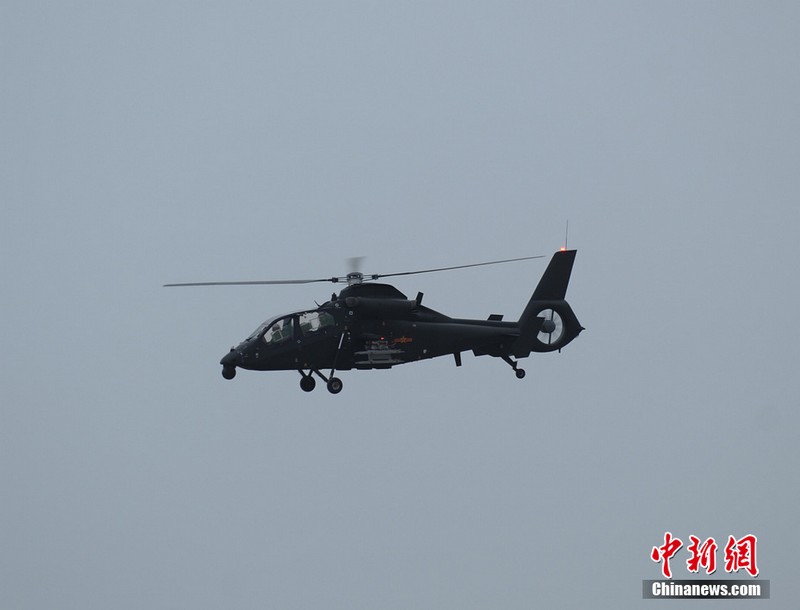 中新網(wǎng)珠海11月11日電(陳海峰) 中國陸航直19武裝直升機(jī)11日在珠海航展上空進(jìn)行了精彩的飛行表演。