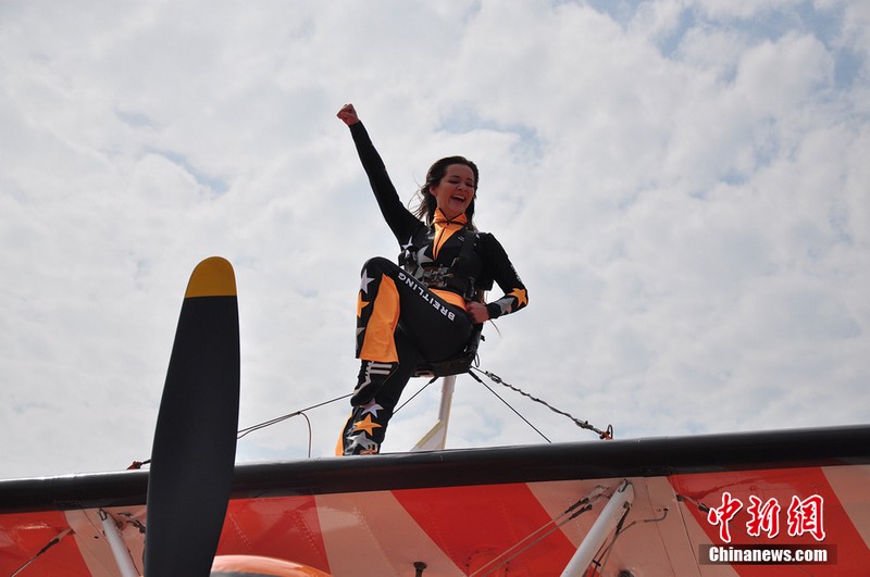機(jī)翼上的芭蕾:美女特技演員機(jī)翼上跳舞