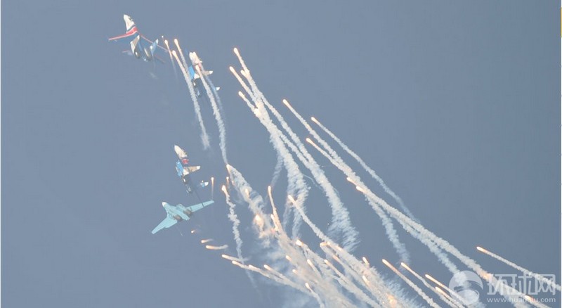 【環(huán)球網(wǎng)赴珠海航展特派報道組綜合報道】第九屆中國國際航空航天博覽會(珠海航展2012)將于11月13日-18日在廣東省珠海市金灣區(qū)三灶鎮(zhèn)隆重舉行。12日,“俄羅斯勇士”飛行表演隊舉行了本屆珠海航展正式開幕前的預演。