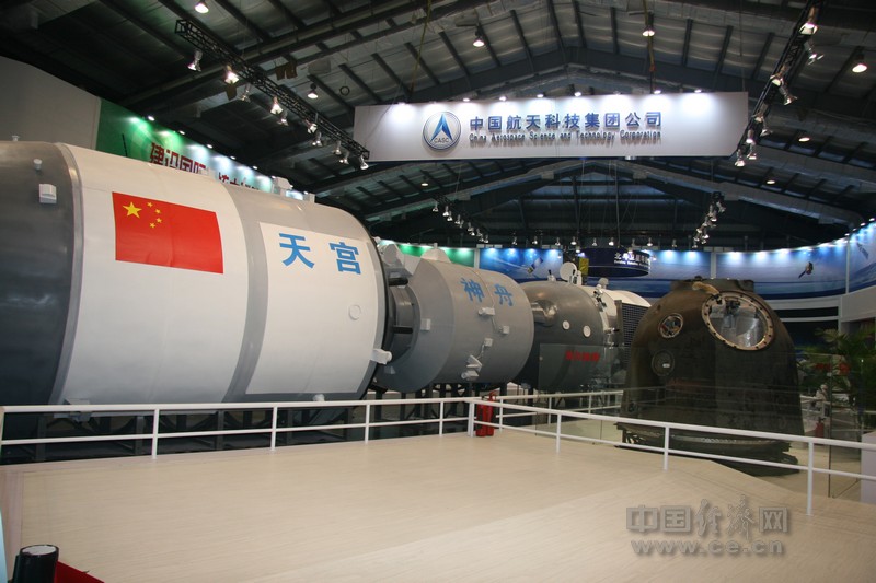 中國經(jīng)濟網(wǎng)珠海航展特派記者團記者 王飛 11月16日報道 在11月13日開幕的2012珠海航展上,在中國航天館展出的神九和天宮。