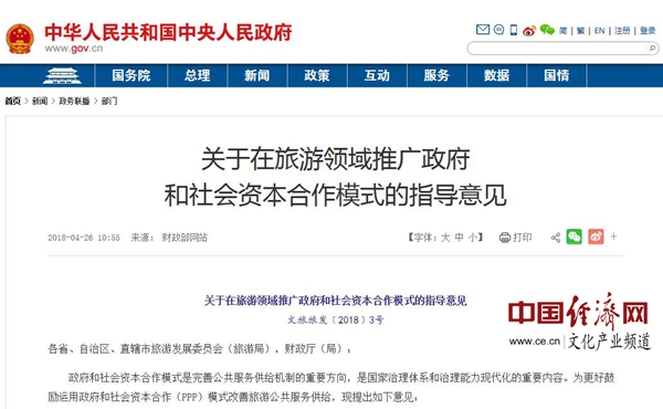 關(guān)于在旅游領(lǐng)域推廣政府和社會資本合作模式的指導意見
