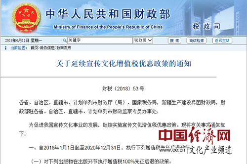 經(jīng)濟(jì)日?qǐng)?bào)-中國經(jīng)濟(jì)網(wǎng)北京6月12日訊 近日,財(cái)政部和稅務(wù)總局聯(lián)合發(fā)布了關(guān)于延續(xù)宣傳文化增值稅優(yōu)惠政策的通知(以下簡稱“通知”)。經(jīng)濟(jì)日?qǐng)?bào)-中國經(jīng)濟(jì)網(wǎng)記者發(fā)現(xiàn),各類出版物在出版環(huán)節(jié)執(zhí)行增值稅先征后退至少50%。