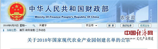 經(jīng)濟(jì)日報-中國經(jīng)濟(jì)網(wǎng)北京6月25日訊 日前,財政部公示了2018年國家現(xiàn)代農(nóng)業(yè)產(chǎn)業(yè)園創(chuàng)建名單。公示的名單包括21個國家現(xiàn)代農(nóng)業(yè)產(chǎn)業(yè)園,公示期為6月22日至6月26日。