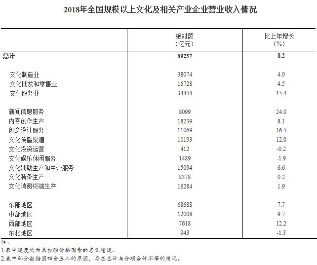 2018年全國規(guī)模以上文化及相關(guān)產(chǎn)業(yè)企業(yè)營業(yè)收入增長8.2%