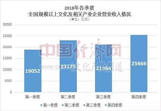 經(jīng)濟日報-中國經(jīng)濟網(wǎng)記者回顧了2018年發(fā)布的4份《規(guī)模以上文化及相關(guān)產(chǎn)業(yè)生產(chǎn)經(jīng)營季度報告》后發(fā)現(xiàn),2018年第四季度全國規(guī)模以上文化及相關(guān)企業(yè)營業(yè)收入最高。