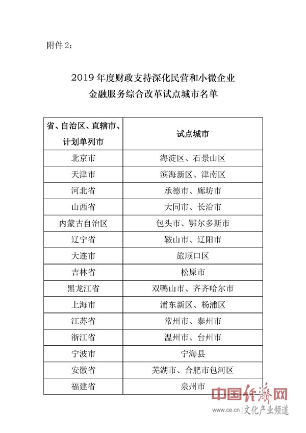 59個市(州、區(qū))入選2019年度財政支持深化民營和小微企業(yè)金融服務綜合改革試點城市