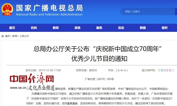 “慶祝新中國成立70 周年”優(yōu)秀少兒節(jié)目名單