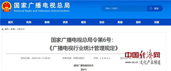 《廣播電視行業(yè)統(tǒng)計(jì)管理規(guī)定》已經(jīng)2020年3月20日國(guó)家廣播電視總局局務(wù)會(huì)議審議通過(guò),現(xiàn)予公布,自2020年5月5日起施行。