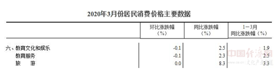 3月份教育文化和娛樂類居民消費(fèi)價(jià)格環(huán)比下降0.1%