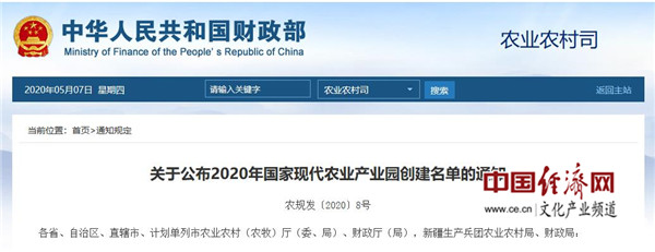 2020年國家現代農業(yè)產業(yè)園創(chuàng)建名單公布
