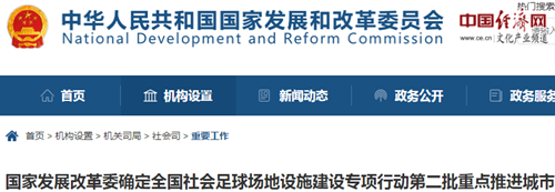 經(jīng)濟(jì)日?qǐng)?bào)-中國(guó)經(jīng)濟(jì)網(wǎng)北京5月9日訊 近日,國(guó)家發(fā)展改革委會(huì)同體育總局、國(guó)務(wù)院足球改革發(fā)展部際聯(lián)席會(huì)議辦公室確定:哈爾濱市、寧德市霞浦縣、萍鄉(xiāng)市、宜春市、日照市、南陽(yáng)市、荊州市、襄陽(yáng)市、婁底市、岳陽(yáng)市、賀州市、貴港市、成都市、自貢市、內(nèi)江市威遠(yuǎn)縣、玉溪市、紅河州、普洱市、榆林市、烏魯木齊市共20個(gè)市(縣)為全國(guó)社會(huì)足球場(chǎng)地設(shè)施建設(shè)專項(xiàng)行動(dòng)(以下簡(jiǎn)稱“專項(xiàng)行動(dòng)”)第二批重點(diǎn)推進(jìn)城市。