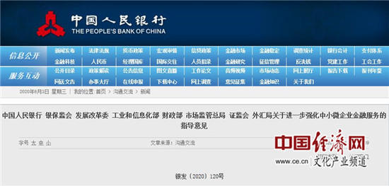 經濟日報-中國經濟網北京6月3日訊 為推動金融支持政策更好適應市場主體的需要,進一步疏通內外部傳導機制,促進中小微企業(yè)融資規(guī)模明顯增長、融資結構更加優(yōu)化,近日,人民銀行、銀保監(jiān)會、發(fā)展改革委、工業(yè)和信息化部、財政部、市場監(jiān)管總局、證監(jiān)會、外匯局聯合印發(fā)《關于進一步強化中小微企業(yè)金融服務的指導意見》(以下稱“意見”)。