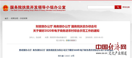 為貫徹落實中央一號文件部署,推動提升電子商務進農(nóng)村,建立農(nóng)村現(xiàn)代市場體系,助力脫貧攻堅和鄉(xiāng)村振興,財政部、商務部、國務院扶貧辦決定2020年繼續(xù)開展電子商務進農(nóng)村綜合示范?,F(xiàn)就有關事項通知如下: