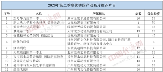 據(jù)經(jīng)濟日報-中國經(jīng)濟網(wǎng)記者了解,此次入選的國產(chǎn)動畫片集數(shù)最長26集,最短1集。根據(jù)相關(guān)通知,入選2020年第二季度優(yōu)秀國產(chǎn)動畫片推薦片目的12部作品將優(yōu)先安排在全國各級電視臺上星綜合頻道、動畫少兒頻道、地面少兒頻道播出。