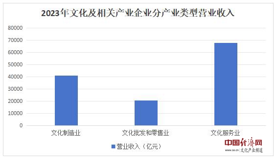 分產(chǎn)業(yè)類型看,文化制造業(yè)實(shí)現(xiàn)營業(yè)收入40962億元,比上年增長0.6%;文化批發(fā)和零售業(yè)20814億元,增長6.1%;文化服務(wù)業(yè)67739億元,增長14.1%。