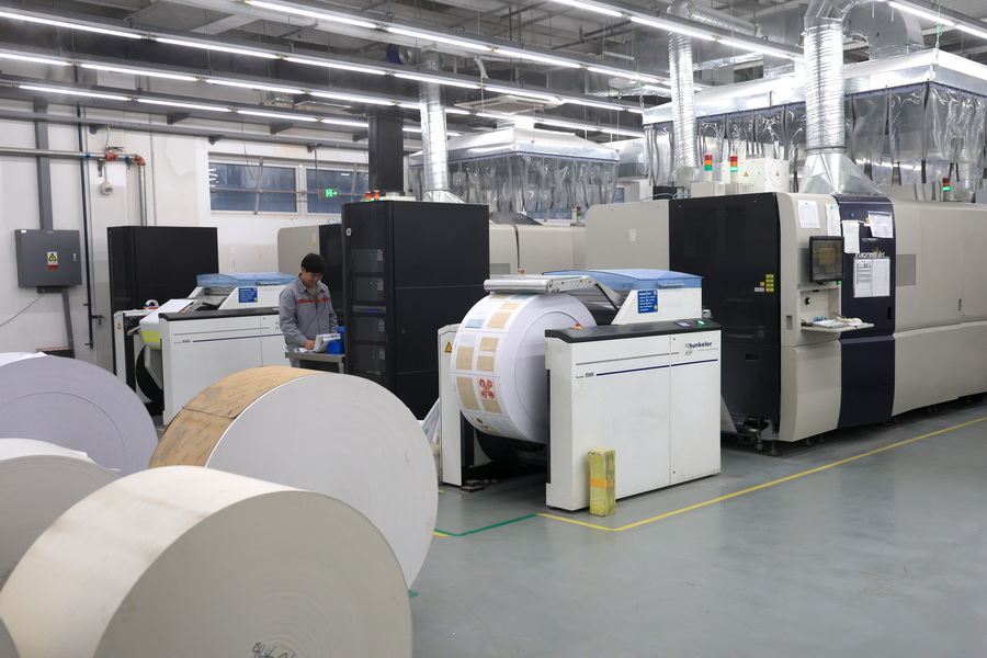 在印刷車間記者看到兩臺機器之間過道非常寬,“這是預留給運輸機器人的通道,下一步要實現(xiàn)自動搬運,以及線邊輔助連接。也就是實現(xiàn)從原紙到印刷機帶料區(qū)進行自動搬運。”負責人說。