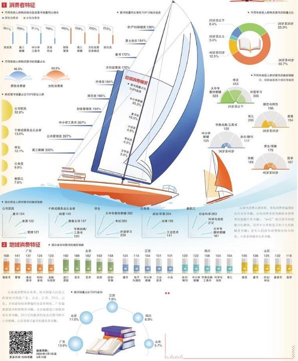 圖書是人們求知的階梯,也是不少人遇到現(xiàn)實問題時,尋找解決途徑的重要選擇。無論是學(xué)生、職場人、管理者,還是年輕父母、中老年人,不同的閱讀偏好也體現(xiàn)出生活重心和關(guān)注點的區(qū)別。從圖書消費人群來看,“80后”人群購買圖書的銷量占比最高,超過了50%。從圖書銷量及增長的占比情況來看,教輔類圖書最受歡迎,增長勢頭十分強勁。