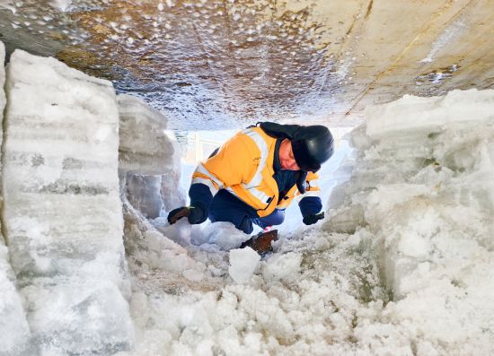 作業(yè)人員使用工具進行“破冰”。 (3)