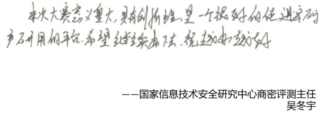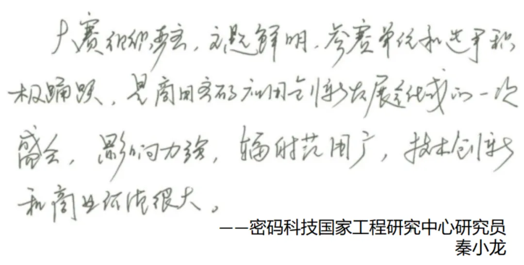 賽后,密碼科技國家工程研究中心研究員秦小龍、中國電力科學研究院高級工程師李智虎、中國科學院大學網絡空間安全學院教授/博導王躍武、國家信息技術安全研究中心商密評測主任吳冬宇等多位專家評委給大賽提出了寶貴的建議和意見。