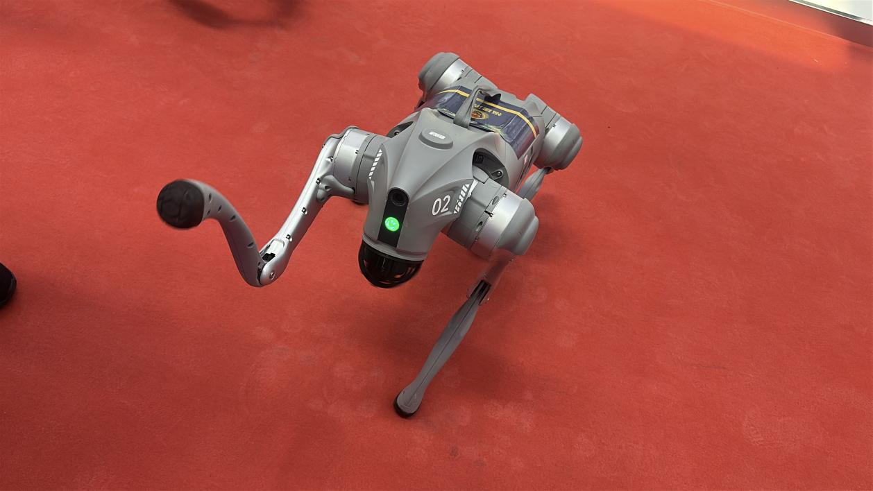 福建消防機(jī)器狗在現(xiàn)場(chǎng)與觀眾互動(dòng)。 中國(guó)經(jīng)濟(jì)網(wǎng)記者梁木攝