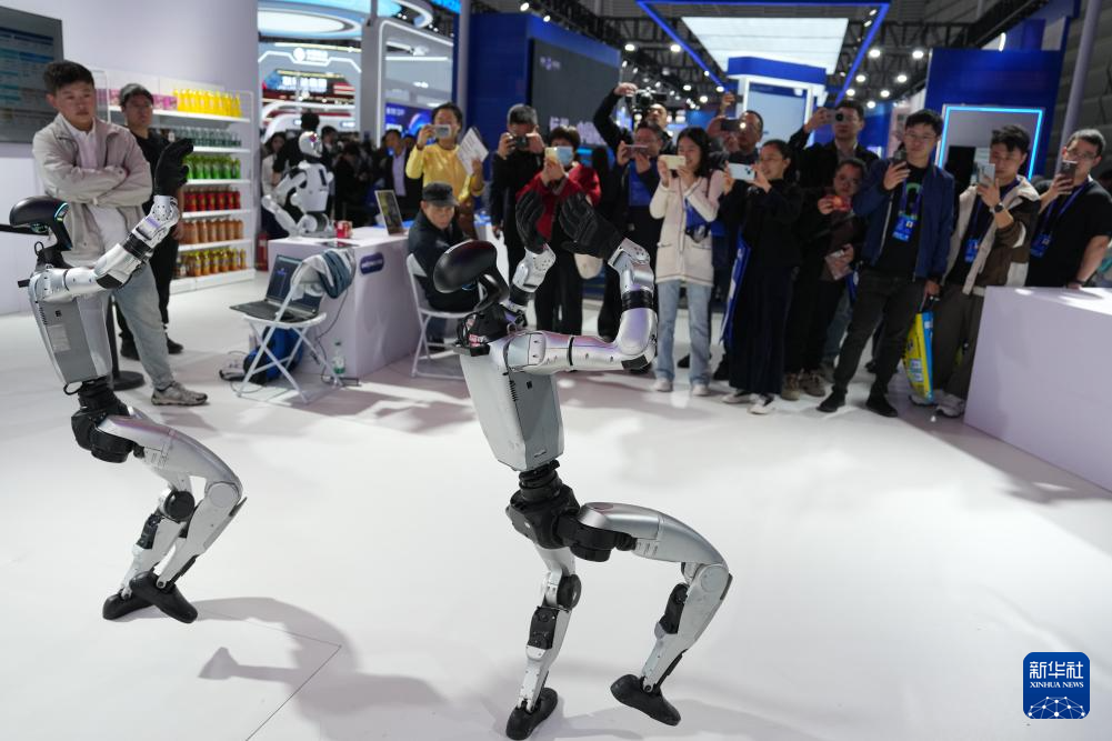 11月6日,觀眾在2025年世界互聯(lián)網(wǎng)大會(huì)“互聯(lián)網(wǎng)之光”博覽會(huì)現(xiàn)場觀摩人形機(jī)器人跳舞。新華社記者 黃宗治 攝