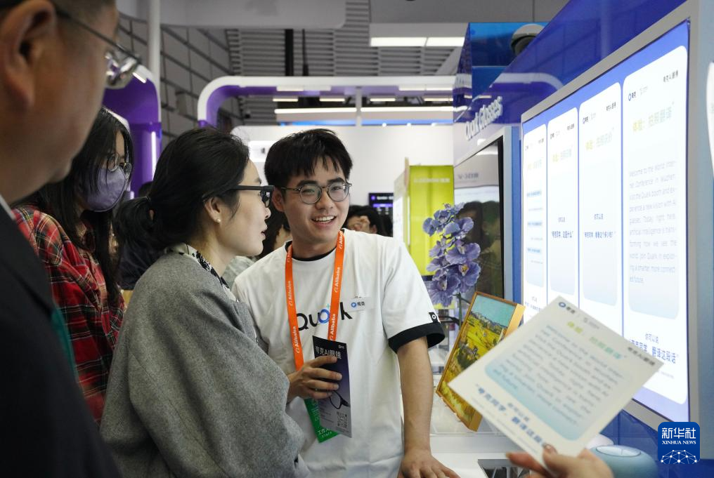 11月6日,觀眾在2025年世界互聯(lián)網(wǎng)大會(huì)“互聯(lián)網(wǎng)之光”博覽會(huì)現(xiàn)場的AI眼鏡展臺試戴AI眼鏡。新華社記者 劉瓊 攝