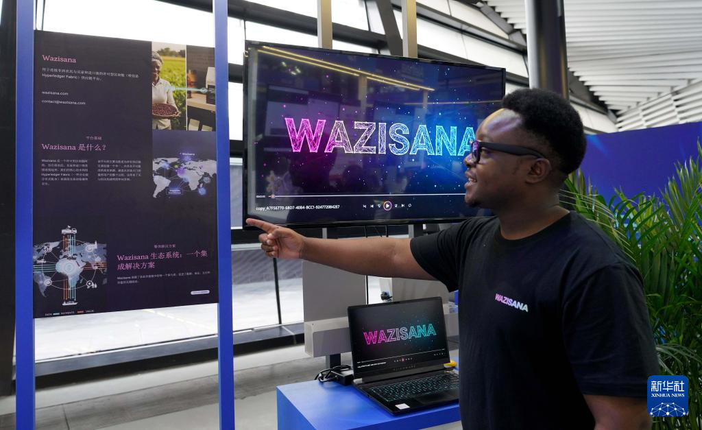 11月6日,來自津巴布韋的參展商在推介一款自主研發(fā)的供應(yīng)鏈平臺。該平臺可用于連接非洲農(nóng)民與買家和進(jìn)口商。他希望將非洲的農(nóng)產(chǎn)品通過平臺更多地銷往中國。新華社記者趙宇思攝
