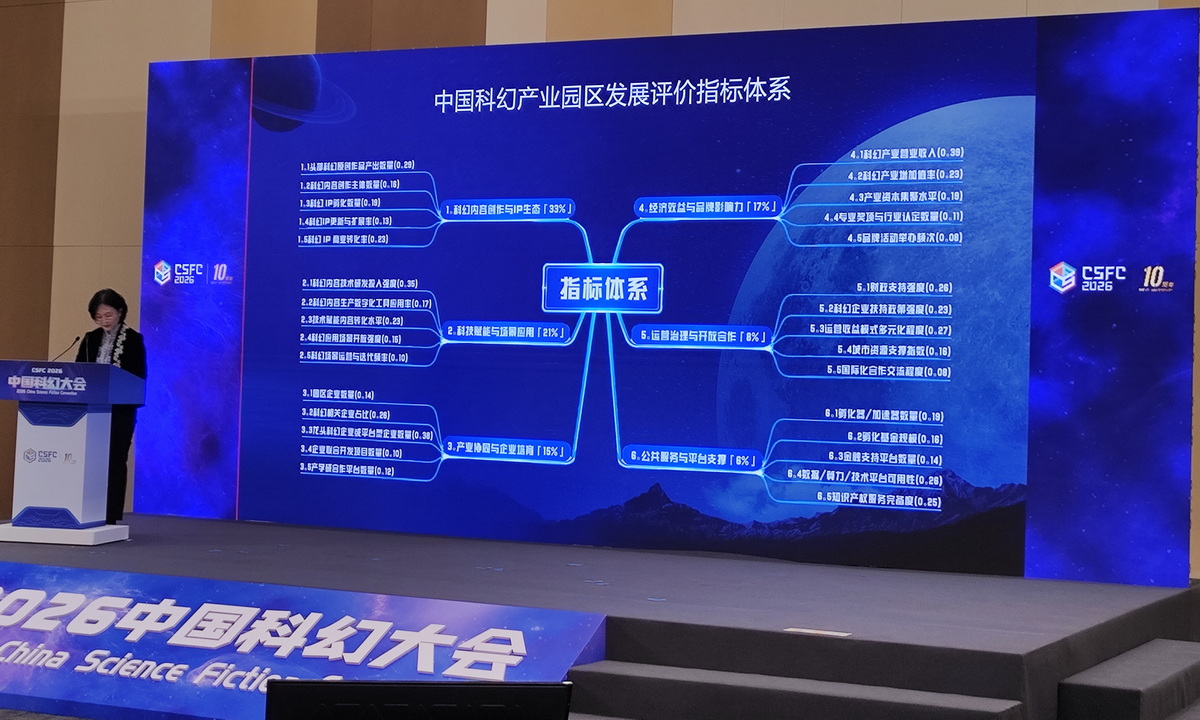 現(xiàn)場(chǎng)發(fā)布《中國(guó)科幻產(chǎn)業(yè)園區(qū)發(fā)展評(píng)價(jià)指標(biāo)體系》。中國(guó)經(jīng)濟(jì)網(wǎng)記者李冬陽(yáng)/攝