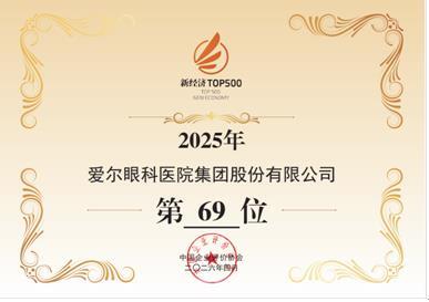 近日,中國企業(yè)評價協(xié)會聯(lián)合中指研究院在京正式發(fā)布《2025中國新經(jīng)濟(jì)企業(yè)TOP500發(fā)展報告》及系列榜單,并指出“新經(jīng)濟(jì)競爭重心正由流量主導(dǎo)轉(zhuǎn)向創(chuàng)新驅(qū)動”。愛爾眼科醫(yī)院集團(tuán)股份有限公司(以下簡稱“愛爾眼科”)憑借扎實的創(chuàng)新實踐及突出的發(fā)展成果,連續(xù)五年榮登“中國新經(jīng)濟(jì)企業(yè)500強(qiáng)”榜單,位列第69位,較去年排名提升4位,彰顯出強(qiáng)勁的發(fā)展韌性。