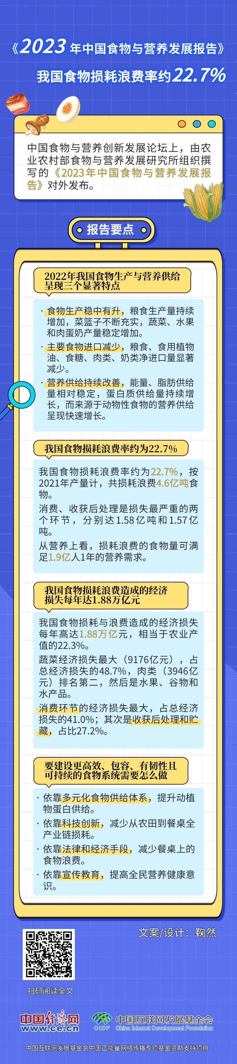 【圖解】《2023年中國(guó)食物與營(yíng)養(yǎng)發(fā)展報(bào)告》發(fā)布 我國(guó)食物損耗浪費(fèi)率約22.7%
