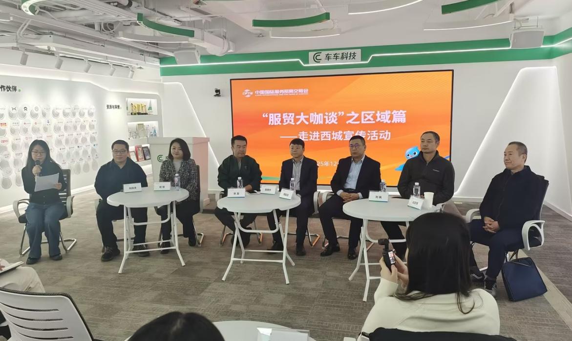 中國(guó)國(guó)際服務(wù)貿(mào)易交易會(huì)“服貿(mào)大咖談”之區(qū)域篇——走進(jìn)西城宣傳活動(dòng)12月16日在北京西城車車科技集團(tuán)舉行。圖為活動(dòng)現(xiàn)場(chǎng)。中國(guó)經(jīng)濟(jì)網(wǎng)記者 朱曉倩/攝