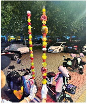 “從50cm到150cm都可訂制,最近開始在網(wǎng)上走紅,不少人覺得拍照好看?!钡曛骼钆拷榻B,每天都是滿單,一周能賣上百串。從早穿到晚都忙不過來,需要提前兩天預(yù)訂。