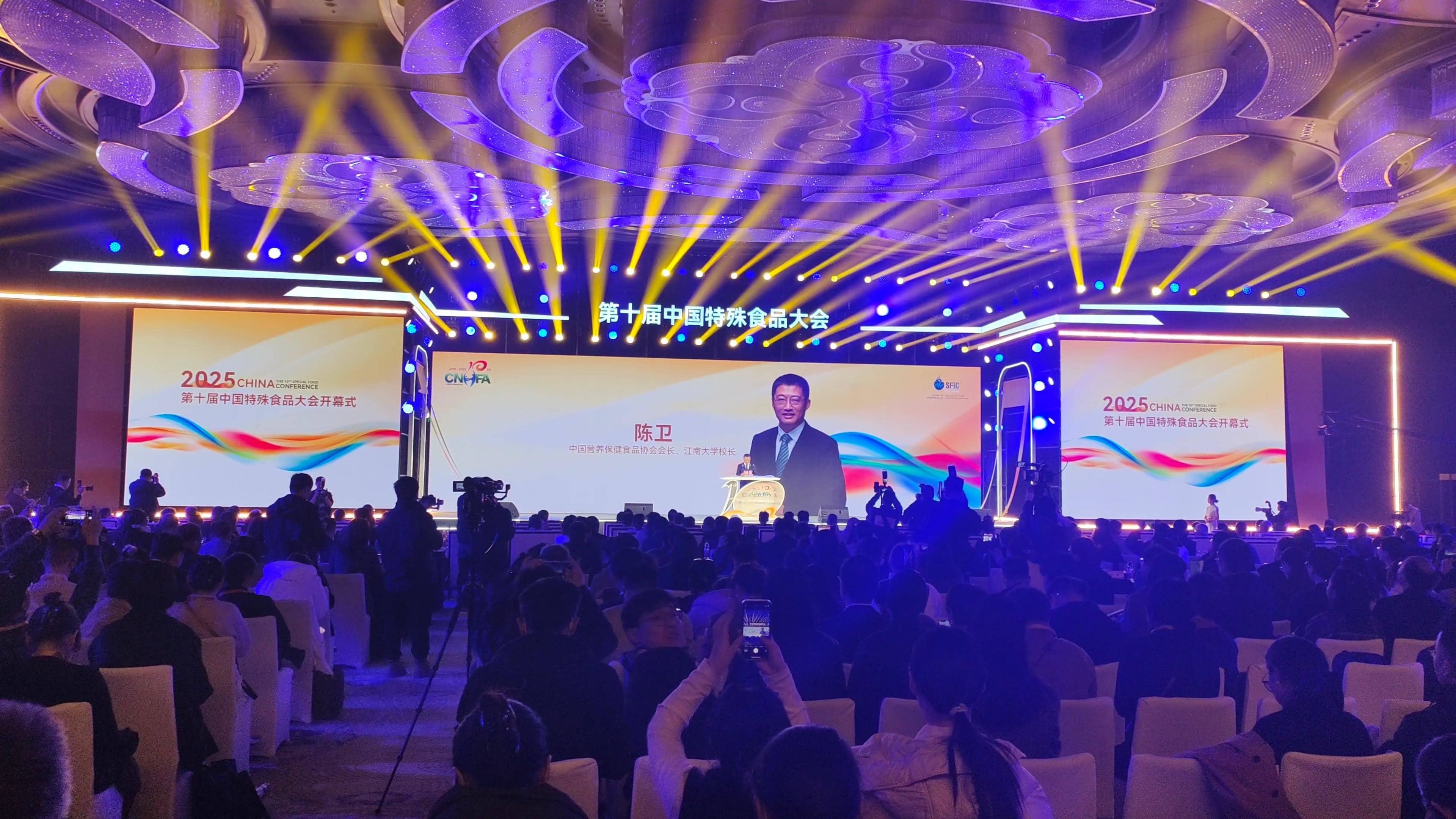 中國營養(yǎng)保健食品協(xié)會會長、江南大學(xué)校長陳衛(wèi)代表主辦單位致歡迎詞時指出,中國營養(yǎng)保健食品協(xié)會始終與行業(yè)同頻共振。堅持科學(xué)為本,夯實創(chuàng)新基石;筑牢安全底線,打造責(zé)任閉環(huán);促進跨界融合,拓展產(chǎn)業(yè)邊界。未來將堅持以“‘拾’光織錦 不啻微芒”的精神,與業(yè)內(nèi)外同仁一道共同開啟中國特殊食品行業(yè)的新篇章。