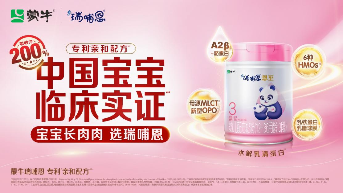 研發(fā)創(chuàng)新是模式重塑的關(guān)鍵一環(huán)。瑞哺恩作為蒙牛旗下高端嬰幼兒奶粉品牌,攜手頂尖大學(xué)研究機(jī)構(gòu)共同發(fā)布全球首個(gè)專利親和配方實(shí)證成果,經(jīng)過中國寶寶臨床喂養(yǎng)研究表明,瑞哺恩獨(dú)創(chuàng)的專利親和配方(MLCT+新型OPO)展現(xiàn)出了卓越的喂養(yǎng)成效,有效提升嬰配粉產(chǎn)品實(shí)力并引領(lǐng)行業(yè)高質(zhì)量發(fā)展。