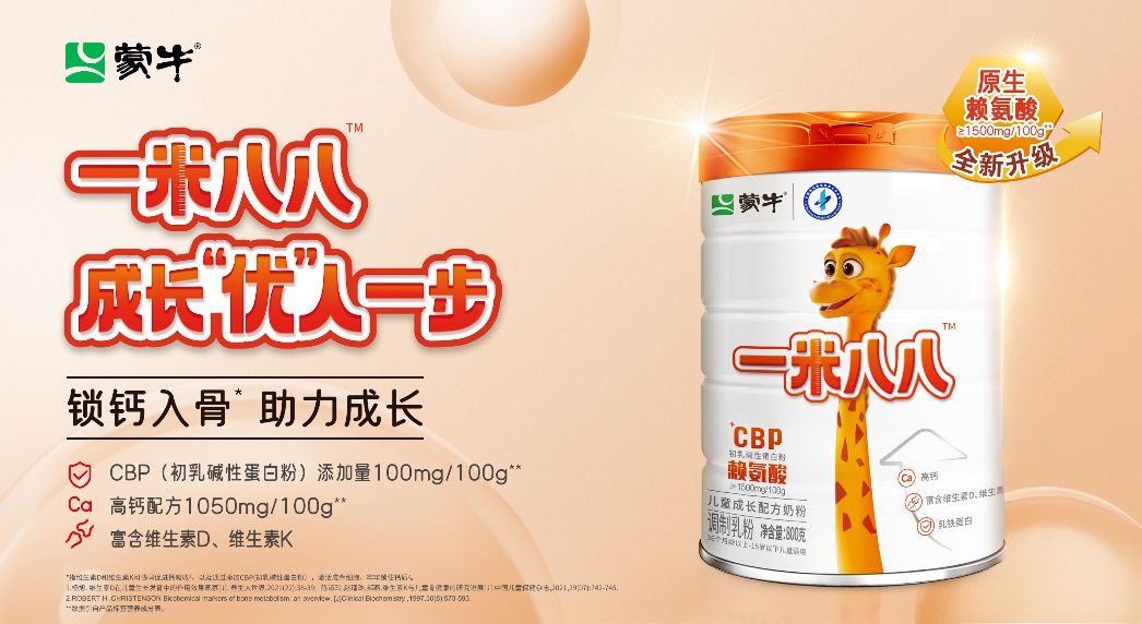 為了滿足兒童在不同成長(zhǎng)階段的需求,蒙牛一米八八首創(chuàng)添加初乳堿性蛋白(CBP),鎖鈣入骨,志在為中國兒童骨骼成長(zhǎng)發(fā)育提供專業(yè)的解決方案。上半年,與中國學(xué)生營(yíng)養(yǎng)與健康促進(jìn)會(huì)合作科研實(shí)證,蒙牛一米八八奶粉針對(duì)學(xué)齡前兒童干預(yù)組在60天內(nèi)身高增長(zhǎng)明顯,相較于對(duì)照組,身高差異高達(dá)30%。憑借強(qiáng)大的科研優(yōu)勢(shì)及產(chǎn)品品質(zhì),蒙牛一米八八榮獲世界乳品創(chuàng)新獎(jiǎng)的兒童乳制品優(yōu)秀獎(jiǎng),夯實(shí)了兒童骨骼發(fā)育營(yíng)養(yǎng)領(lǐng)域的權(quán)威地位。
