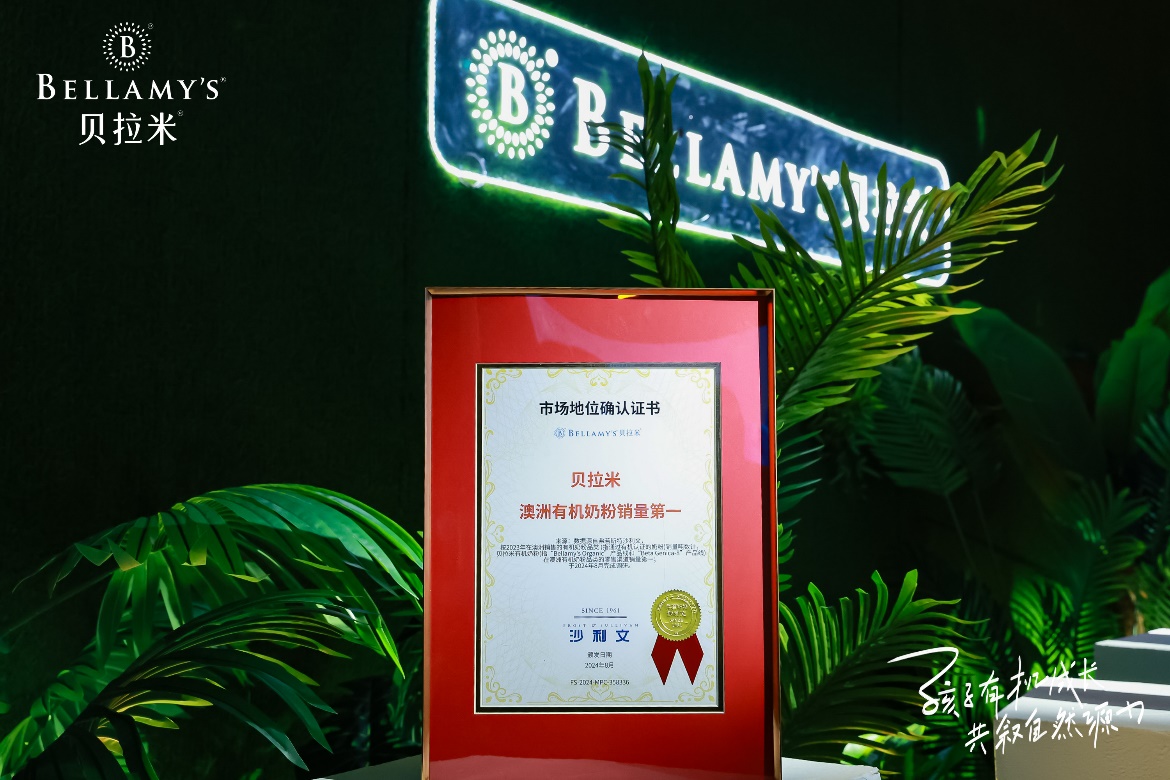 8月,貝拉米獲得全球增長(zhǎng)咨詢公司弗若斯特沙利文授予的“貝拉米,澳洲有機(jī)奶粉銷量第一”市場(chǎng)地位確認(rèn)證書,有機(jī)奶粉領(lǐng)導(dǎo)品牌的強(qiáng)勁實(shí)力再次得以彰顯。