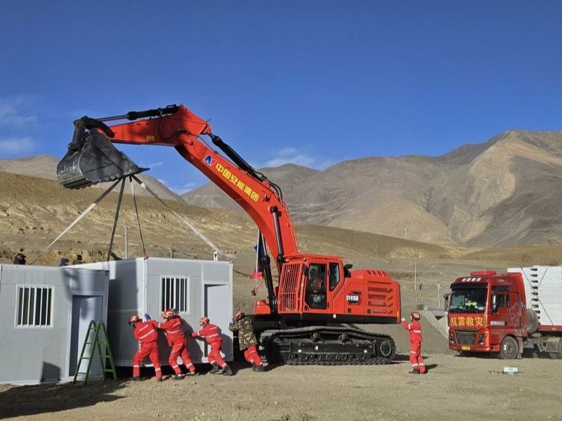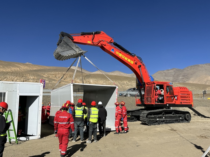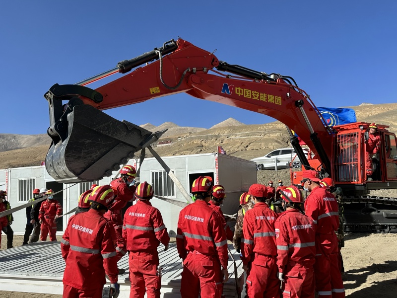 1月9日,在前方指揮部的統(tǒng)一調(diào)度下,繼完成受損房屋搜尋、用電需求保障、安置帳篷搭設(shè)、協(xié)助轉(zhuǎn)運重傷員等任務(wù)后,為了保障受災(zāi)群眾溫暖過冬,中國安能在嘎旦村、玉白村方向組織開展場地平整作業(yè),并進行活動板房的搭設(shè)。在嘎旦村投入60余人、10余臺重型救援裝備全力投入板房搭設(shè)工作。過程中,挖掘機、吊機等重型裝備與救援人員共同協(xié)作,搭建工作進展迅速。