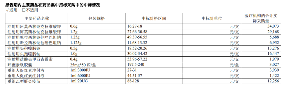 據(jù)其《2020年年度報(bào)告》,2020年內(nèi),華北制藥集采主要中標(biāo)產(chǎn)品還有注射用阿莫西林鈉克拉維酸鉀、注射用哌拉西林鈉他唑巴坦鈉、注射用頭孢噻肟鈉、注射用鹽酸去甲萬(wàn)古霉素、環(huán)孢素軟膠囊、重組乙型肝炎疫苗等。不過(guò),上述產(chǎn)品供應(yīng)如何,華北制藥在其回應(yīng)中尚未說(shuō)明。