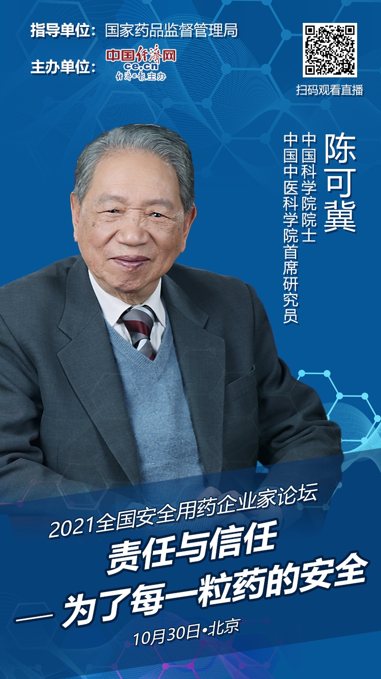 中國經(jīng)濟(jì)網(wǎng)北京10月30日訊 (記者 郭文培) “中西醫(yī)結(jié)合醫(yī)學(xué)的生命力在于提高臨床療效,安全療效尤為重要?!?0月30日,在中國經(jīng)濟(jì)網(wǎng)舉辦的2021全國安全用藥企業(yè)家論壇上,對于中西醫(yī)結(jié)合醫(yī)學(xué)的發(fā)展,中國科學(xué)院院士、中國中醫(yī)科學(xué)院首席研究員陳可冀如此表示。