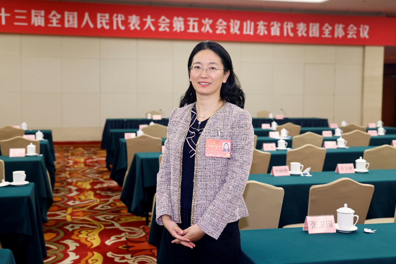 全國人大代表、齊魯制藥集團總裁李燕在十三屆全國人民代表大會第五次會議山東省代表團全體會議現(xiàn)場。圖片由受訪者提供。