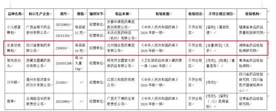 通告顯示,經(jīng)湖南省藥品檢驗(yàn)檢測研究院檢驗(yàn),標(biāo)示為四川逢春制藥有限公司生產(chǎn)的1批次玄麥甘桔顆粒(批次:210910)不符合規(guī)定,不符合規(guī)定項(xiàng)目為含量測定。